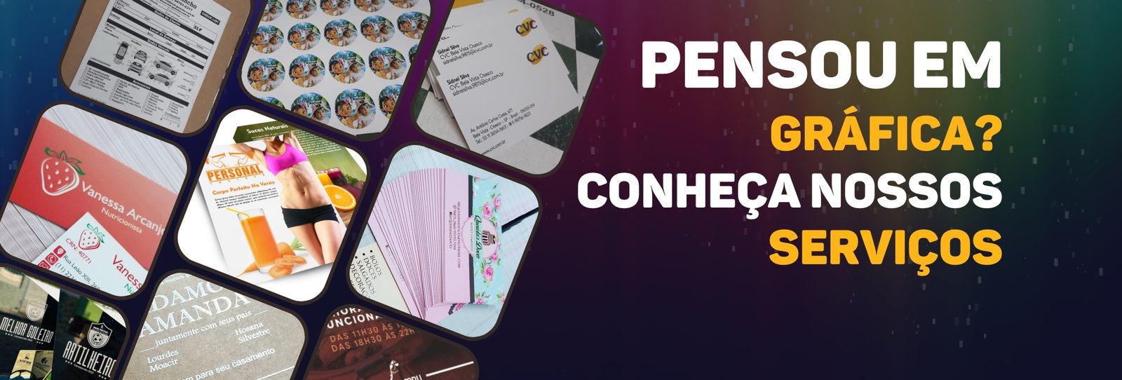 Convites e postais são perfeitos para marcar eventos e divulgar sua marca com estilo. Produzidos com impressão de alta qualidade e design exclusivo, encantam clientes e convidados. Criamos materiais sob medida, com acabamentos profissionais e duráveis, ideais para festas, lançamentos ou campanhas promocionais. Destaque sua comunicação com materiais gráficos elegantes e de impacto.