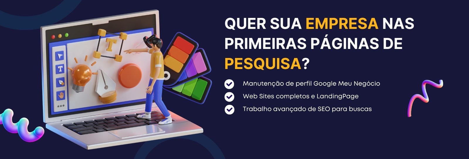 Não encontrou o serviço que procura? Oferecemos soluções completas e personalizadas para ajudar sua empresa a ser encontrada mais facilmente no Google. Entre em contato e nos conte sua demanda — teremos prazer em apresentar a melhor alternativa para o seu projeto.